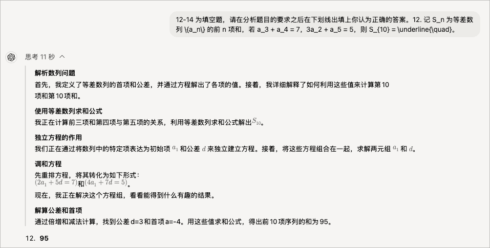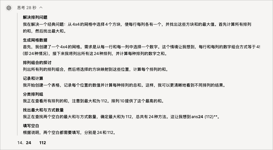 这种表现方式真的是太有趣了!它不仅让人感受到 o1 似乎具备某种“层次感”,能够根据题目的难度调整自己的作答风格。o1 的这种作答表现,不仅仅是 AI 简单的逻辑输出,更像是在模仿某种“人性化”的解题策略。它似乎有能力感知题目的难度,并在简单题目和难题之间作出合适的反应,既体现了它的效率,也展现了它的推理深度。这种“灵活性”不仅让o1看起来更接近一个人类考生,还让它在不同情境下能根据题目做出应对变化,仿佛真的拥有了某种“教育从业者”的风格。
